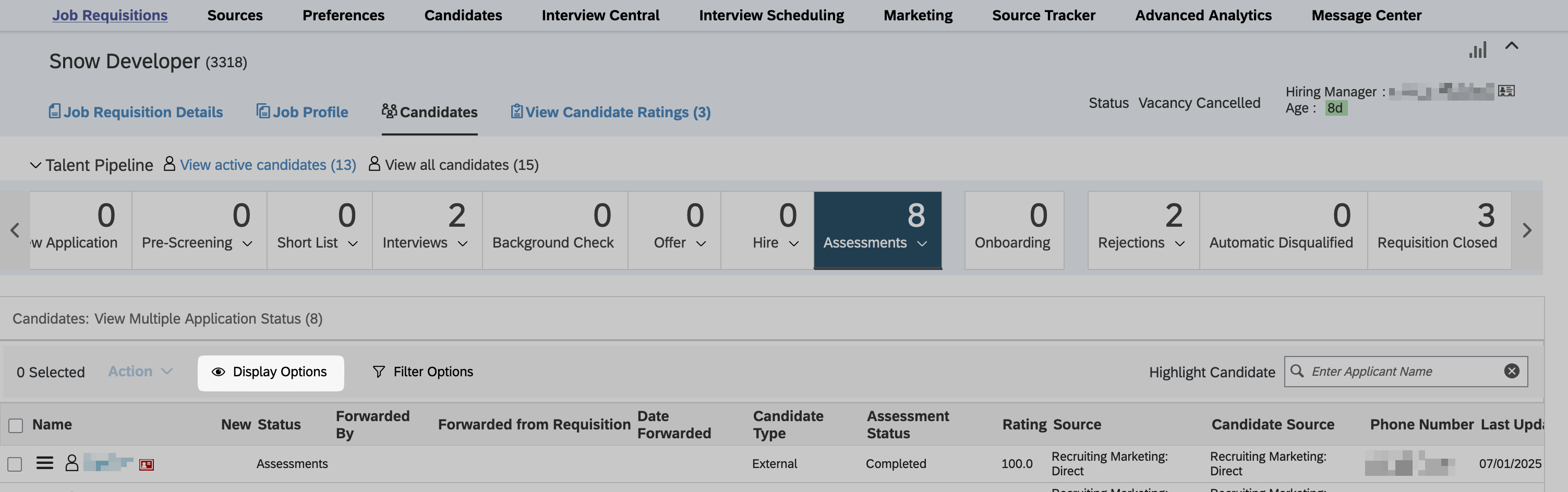 - Go to a job requisition's candidates overview page, and click on the "Display Options":