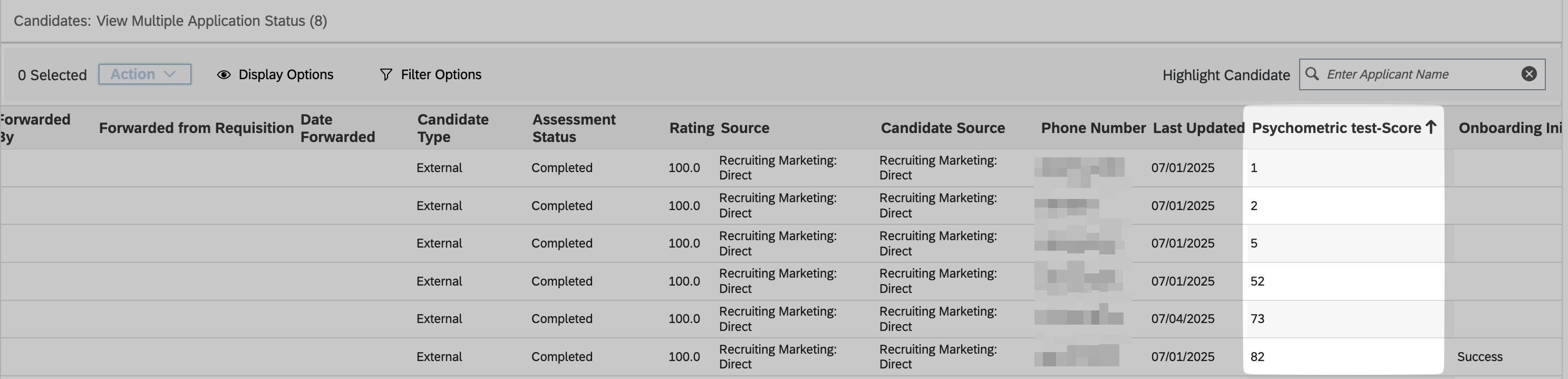 Note: Candidates can't be filtered by their scores in SuccessFactors UI, but they can be sorted by score.