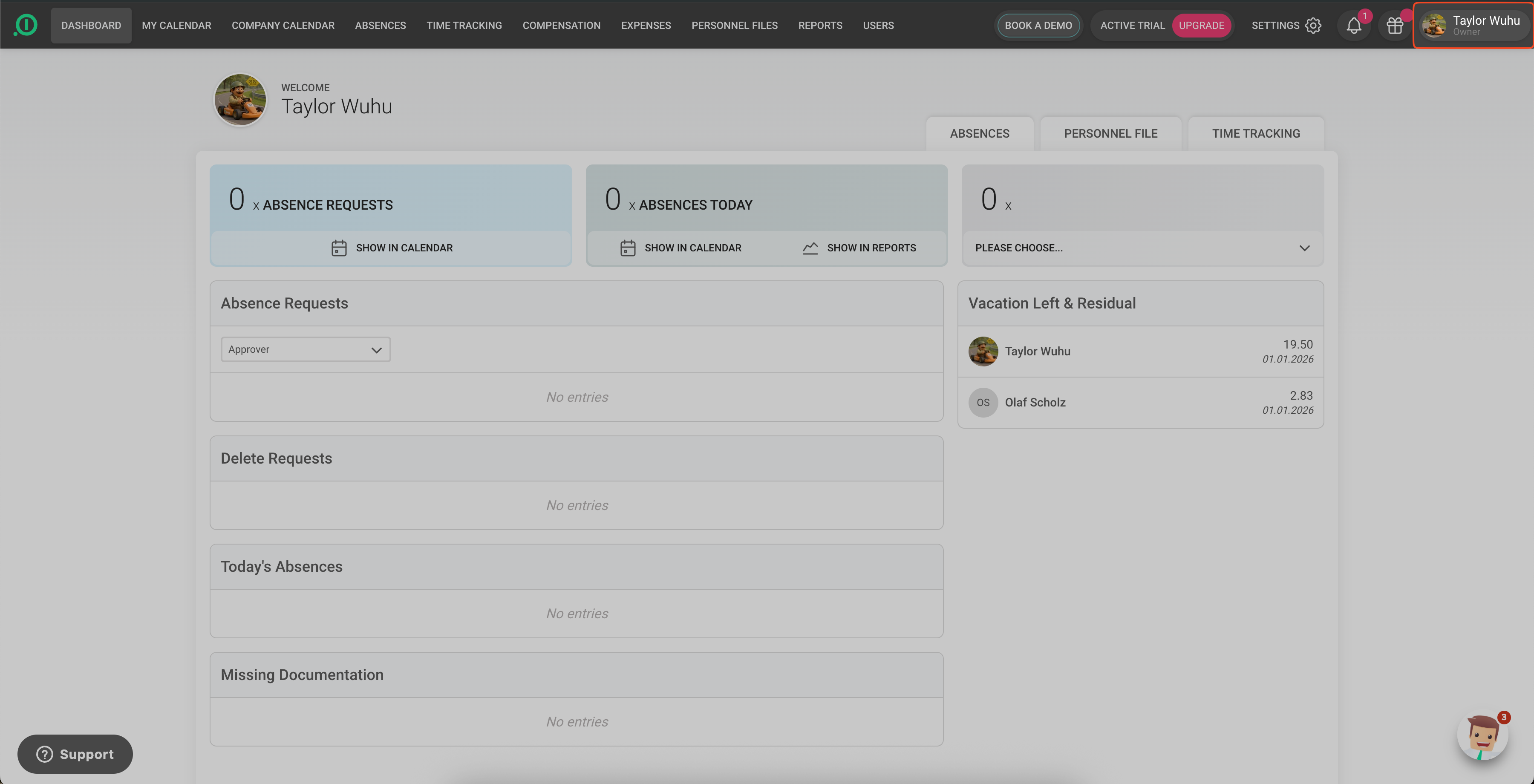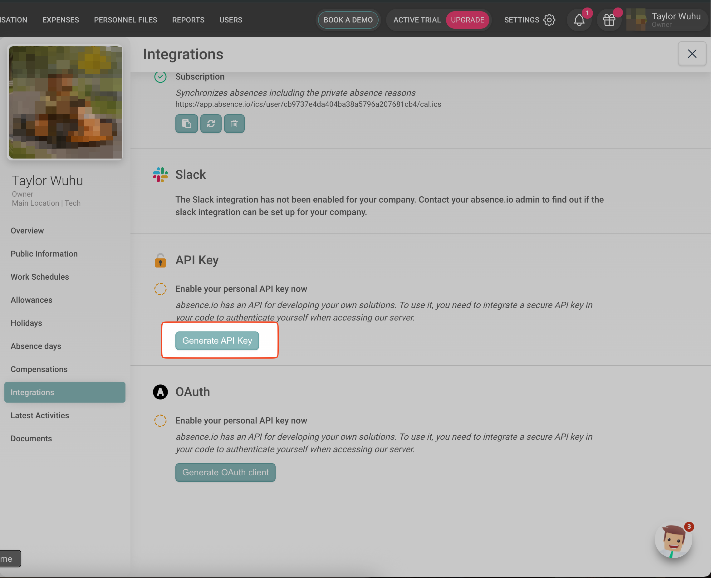 - In Absence.io, click your profile icon in the top right corner.