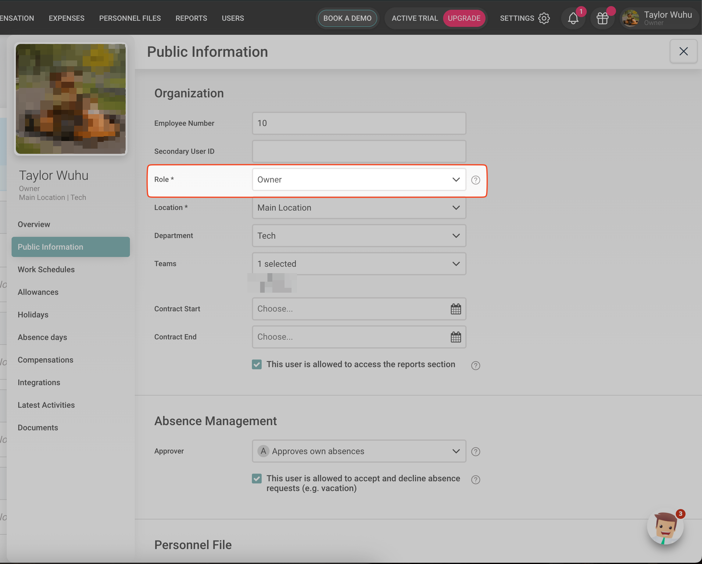 - You can check your role on the Absence.io Profile Page under Public Information.