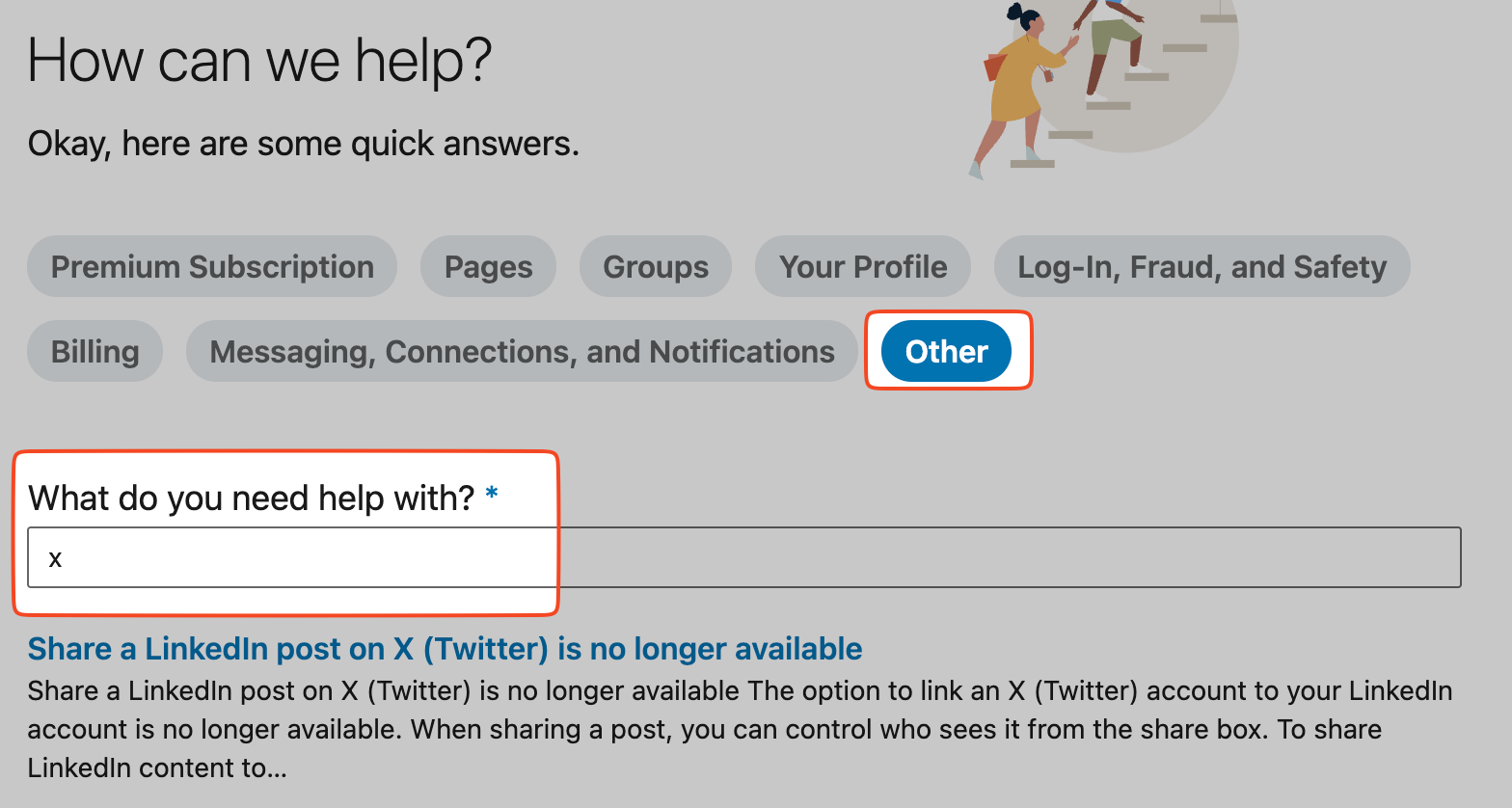 If the menu above is not available to you, you must be not logged in with a Recruiter profile. In this case, click on "Other" as category of of issues. Enter anything into the search field that will appear next, then scroll down and click "Create a support ticket".