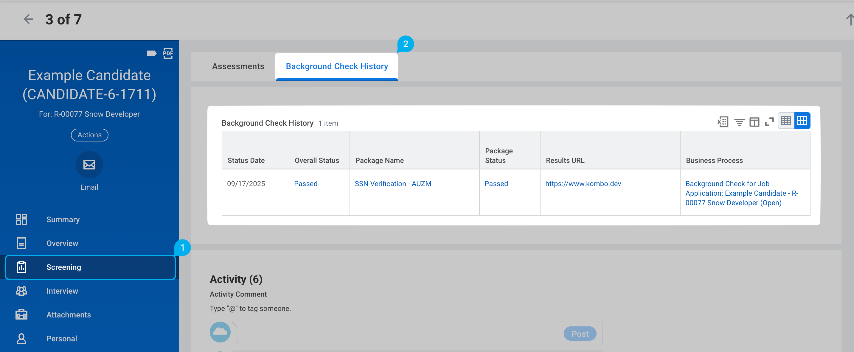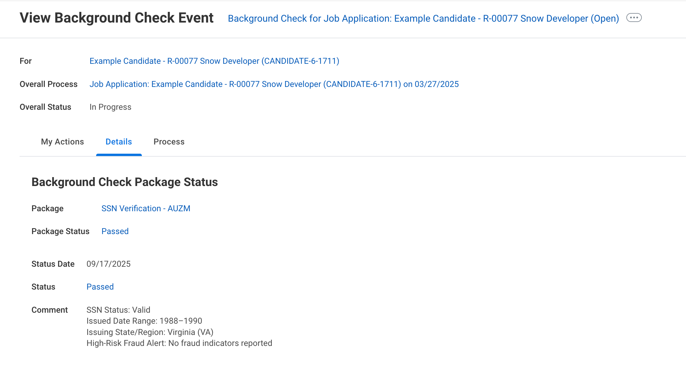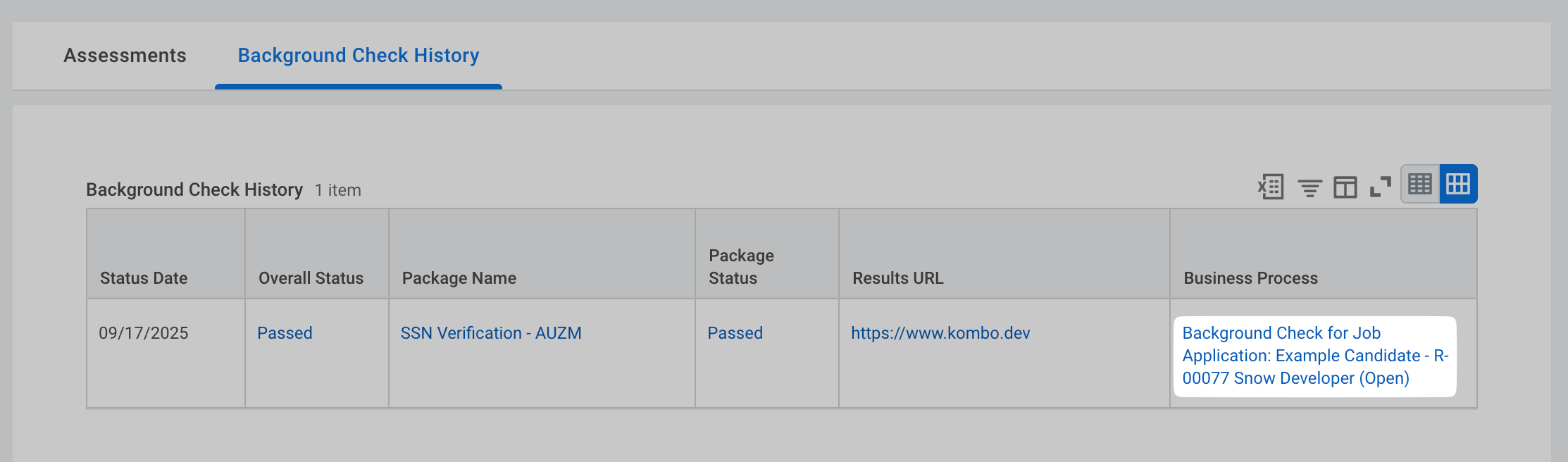 You can view the detailed background check result by clicking on the link in the "Business Process" column: