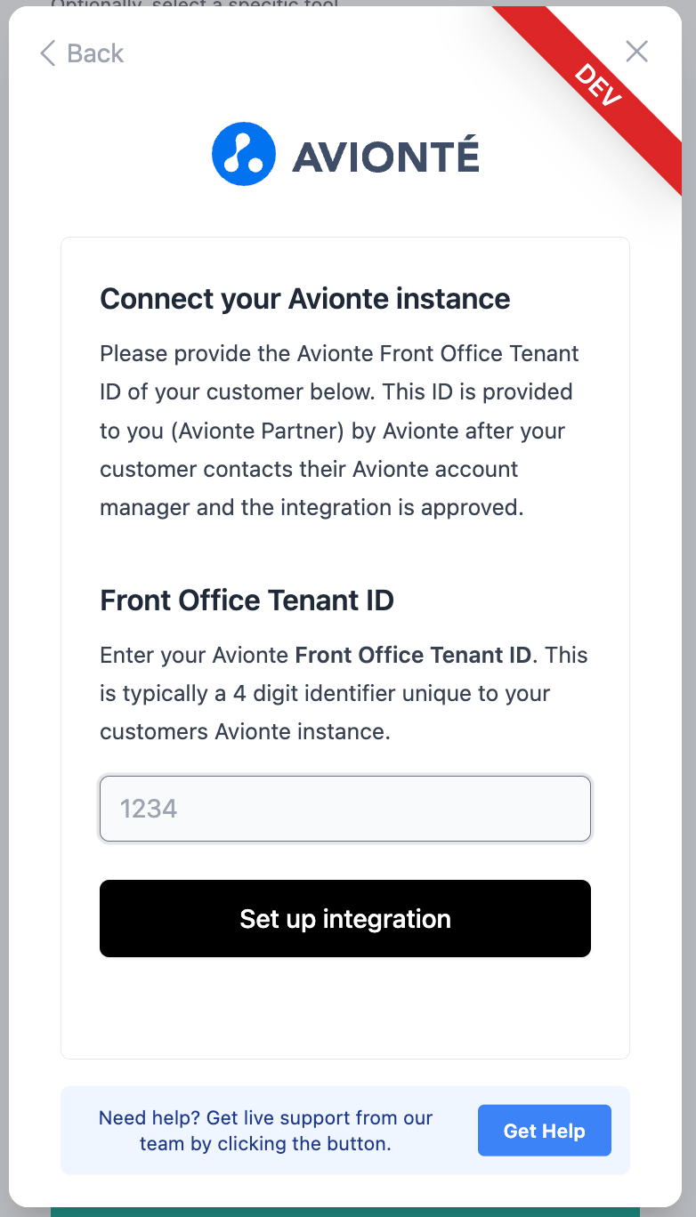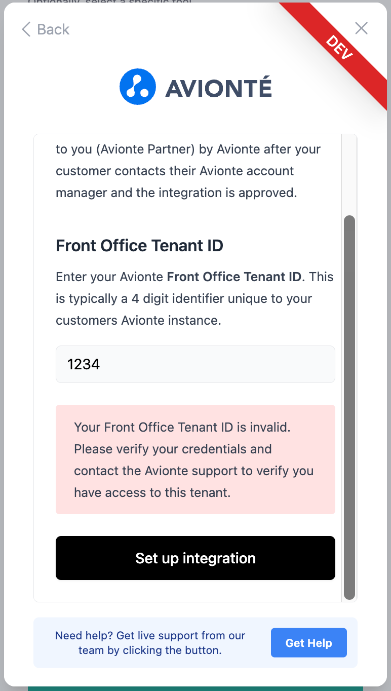 - Avionté will then provide YOU with their Front Office Tenant ID.
