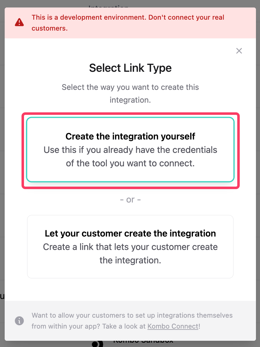 1. Create a new integration (Only you can create this integration from the dashboard for security reasons, your customer would not be able to complete this flow)