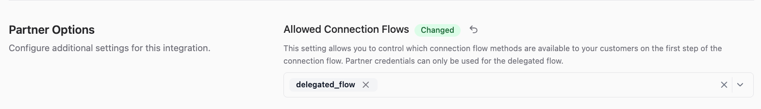 To make this flow available to your customers you need to include the delegated_flow in the Allowed Connection Flows on Settings tab of the tools page.