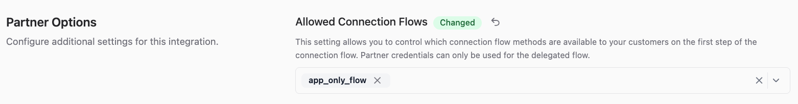 To make this flow available to your customers you need to include the app_only_flow in the Allowed Connection Flows on Settings tab of the tools page (this is the default configuration).