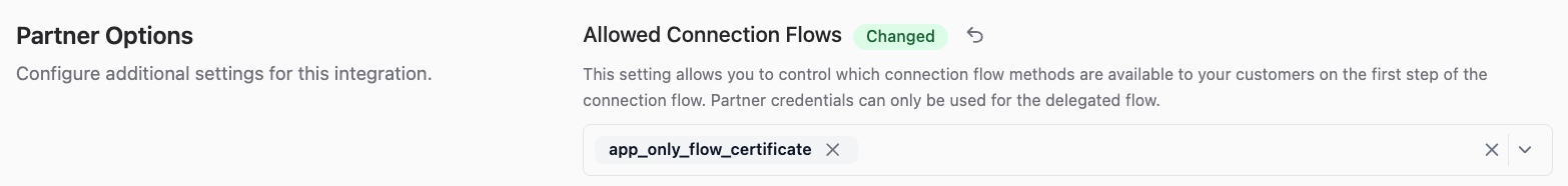 To make this flow available to your customers you need to include the app_only_flow_certificate in the Allowed Connection Flows on Settings tab of the tools page.