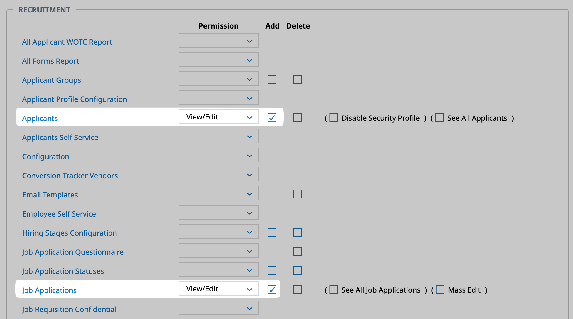 - Set the permissions according to the connection flow.