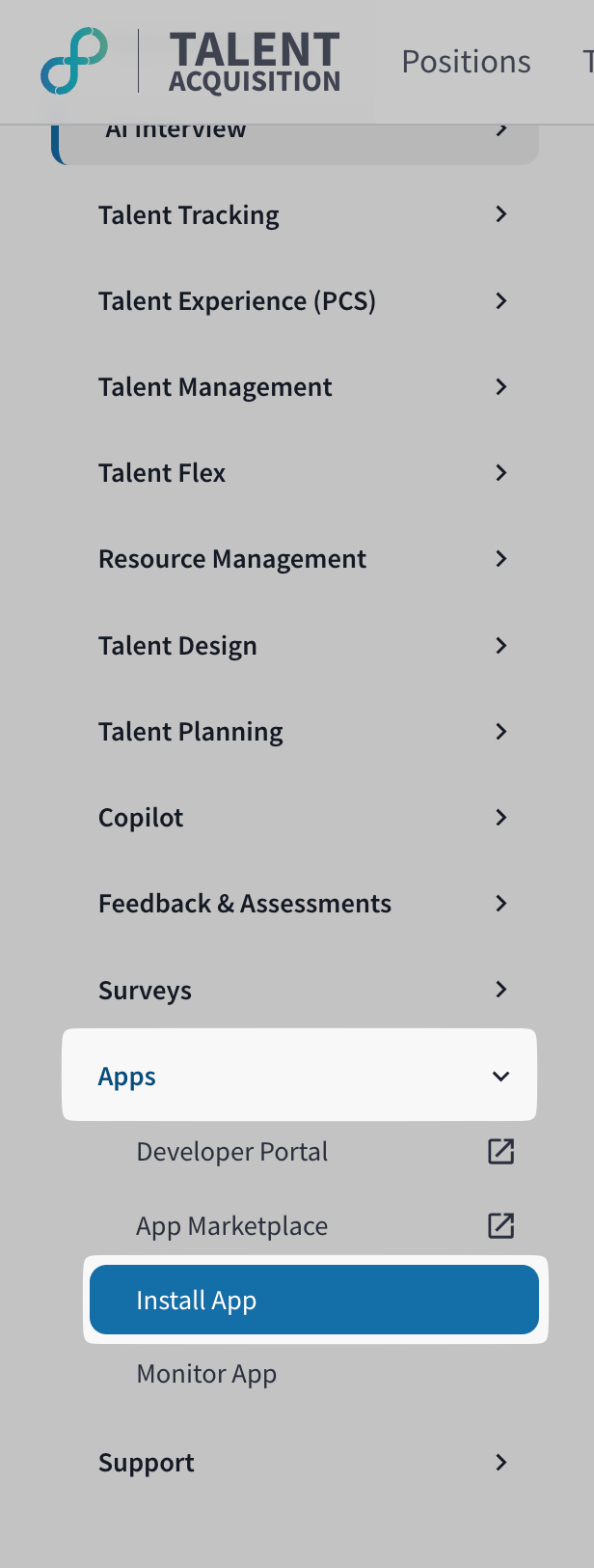- Click on the "Apps" tab on the sidebar, then click on the "Install App" tab from the dropdown