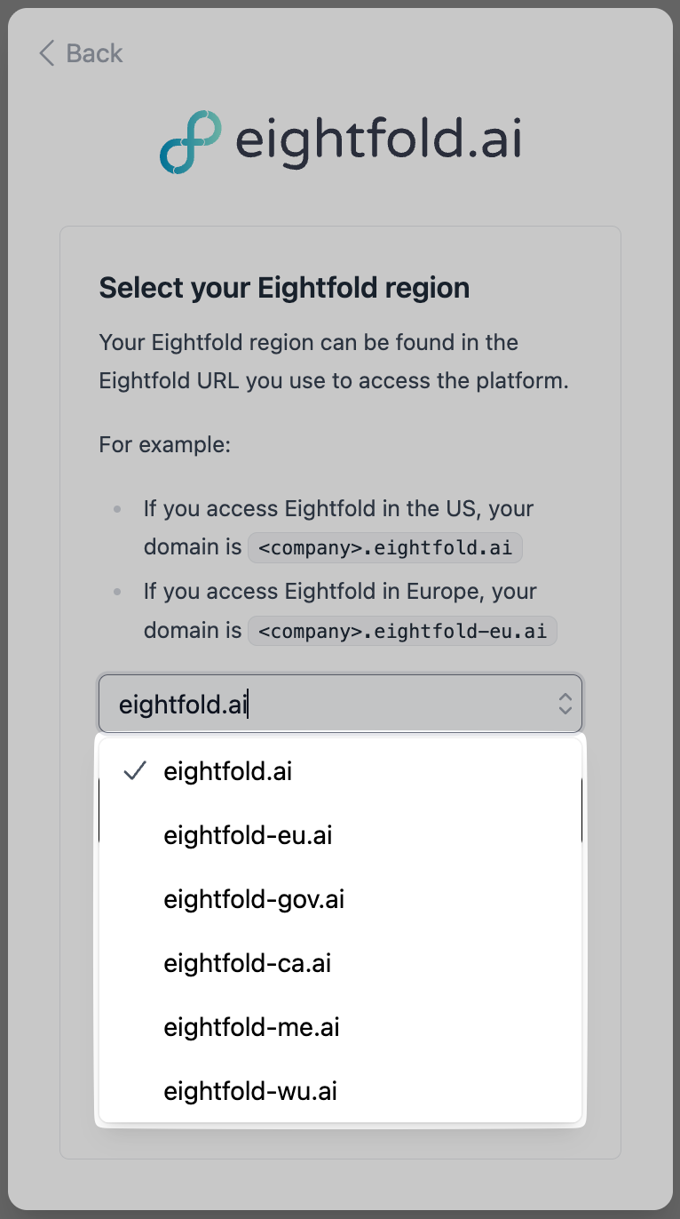 If you are unsure of which region you should pick, please contact Eightfold's support team.