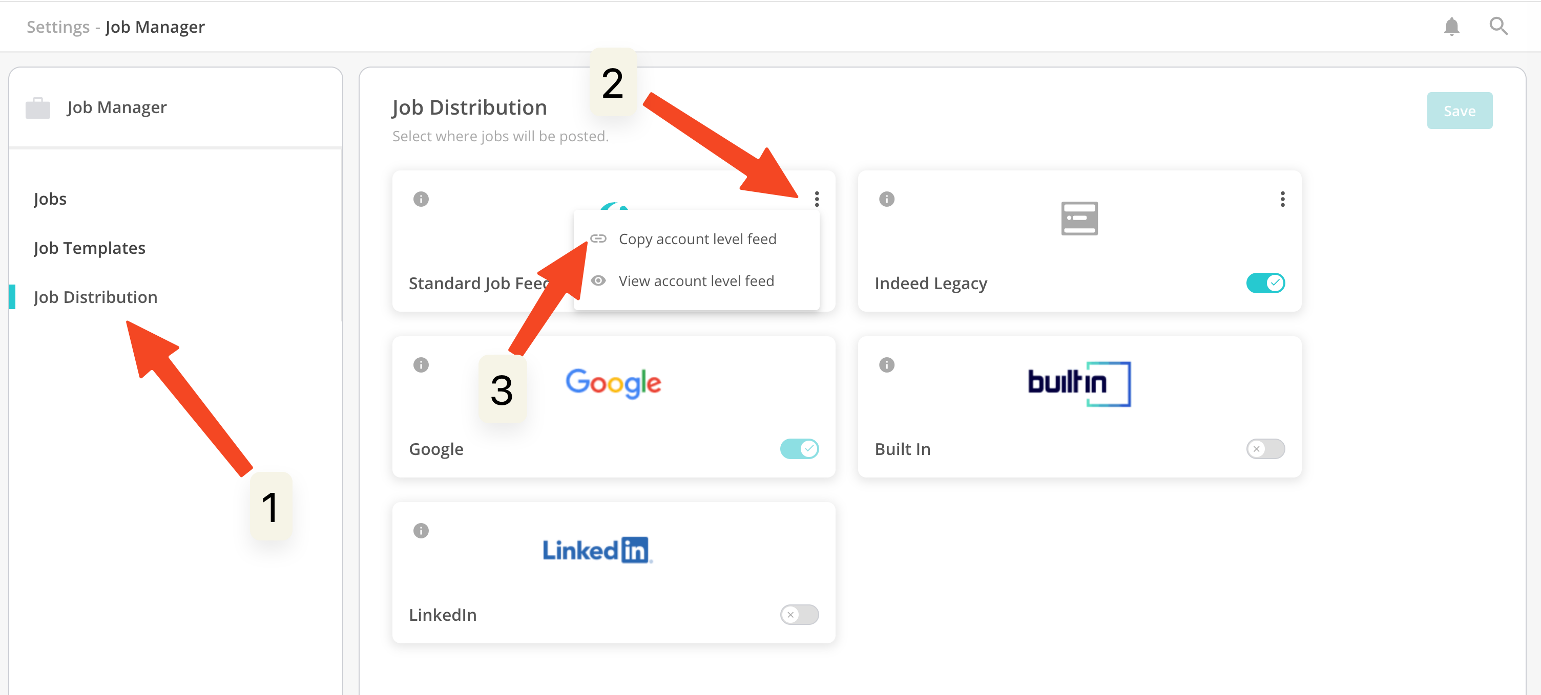 - Click the 3 dots next to "Standard Job Feed"