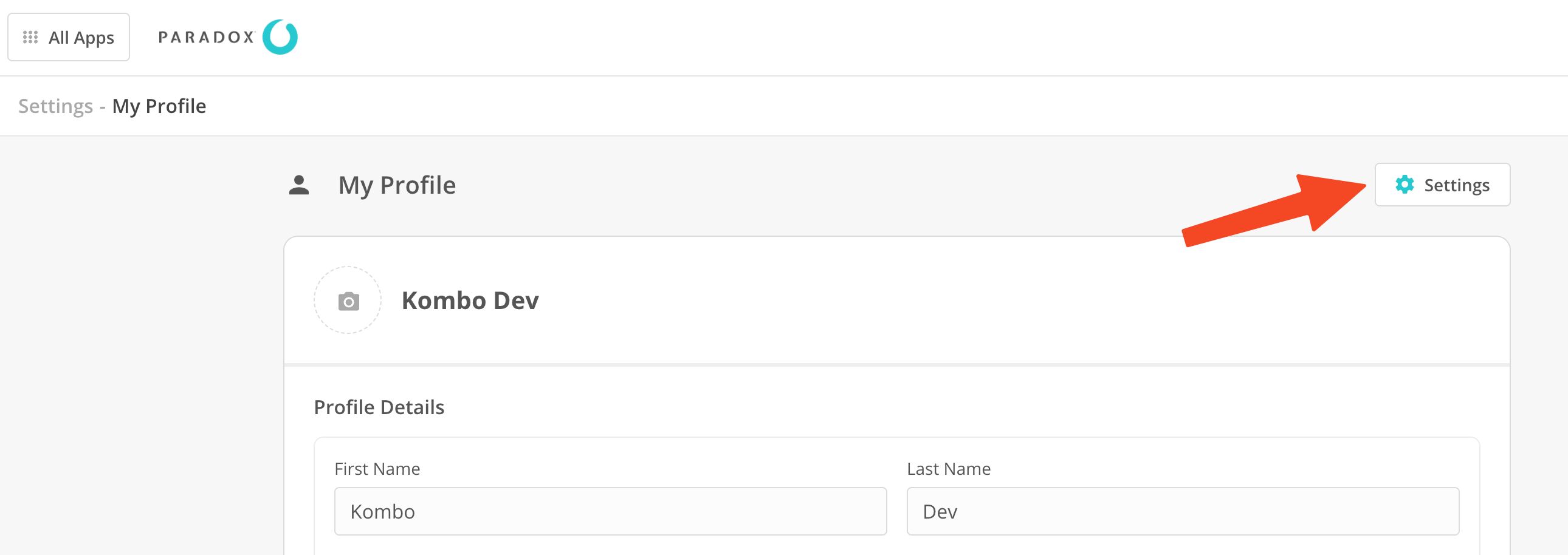 2. In the "My Profile" page, click on "Settings"