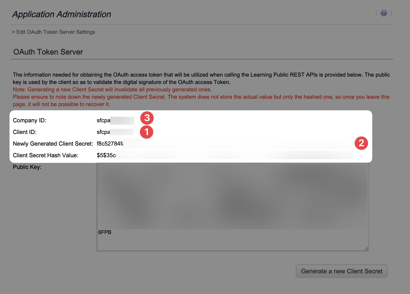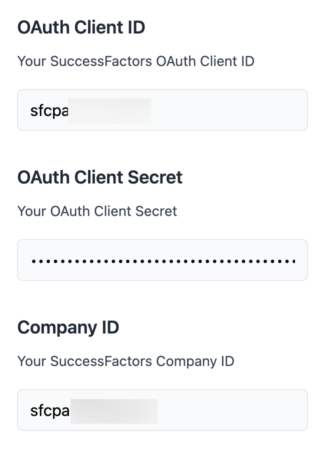 - The page will briefly reload and you will see all of the necessary credentials – copy the "Client ID", "Newly Generated Client Secret", and "Company ID", and paste them in the connection flow: