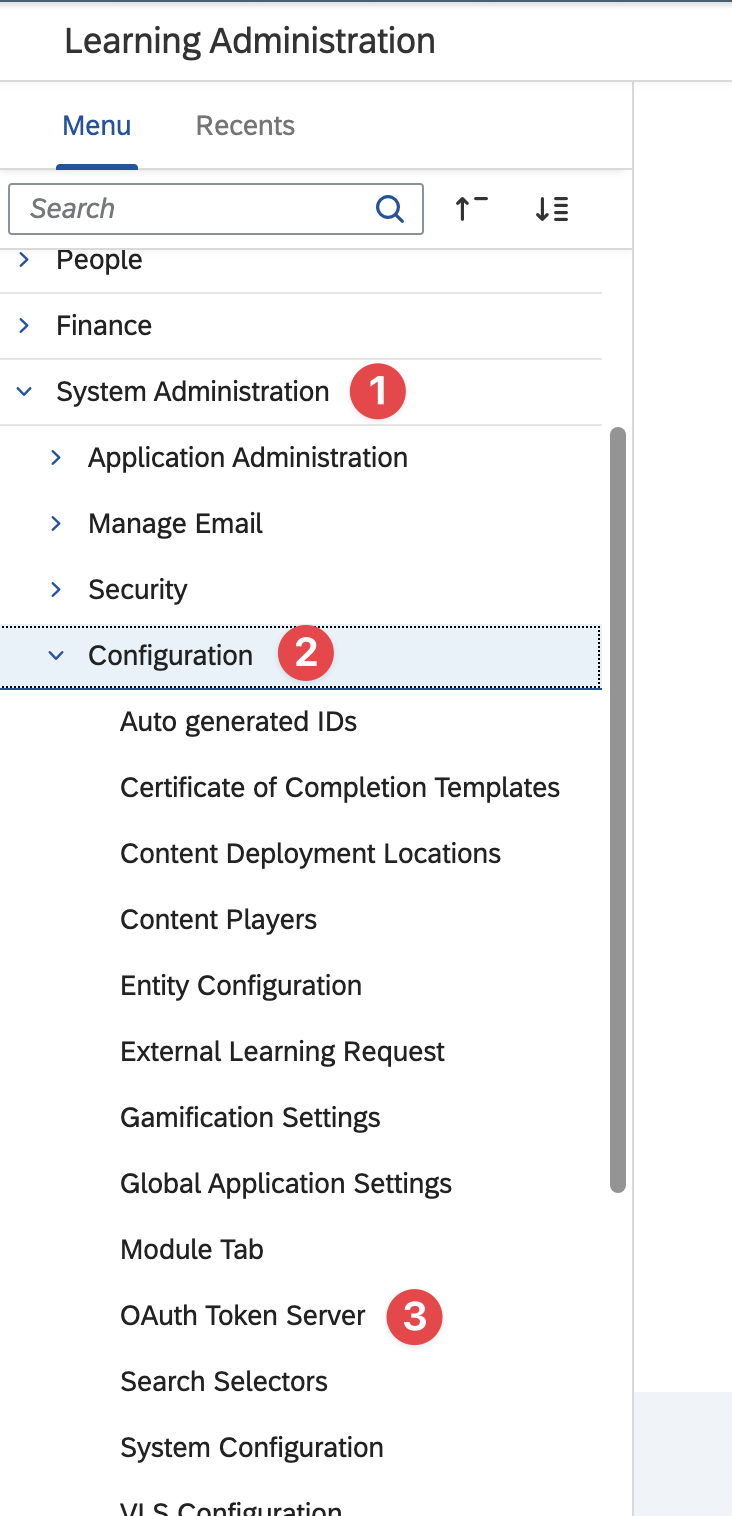 - Use the left side bar menu to open the "System Administration" tab, then click on "Configuration", and finally click on "OAuth Token Server":