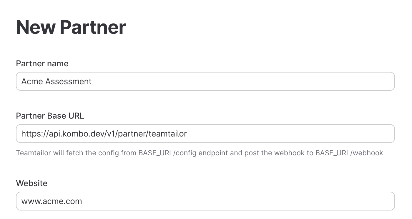 a. Set the "Partner Base URL" field tohttps://api.kombo.dev/v1/partner/teamtailor.