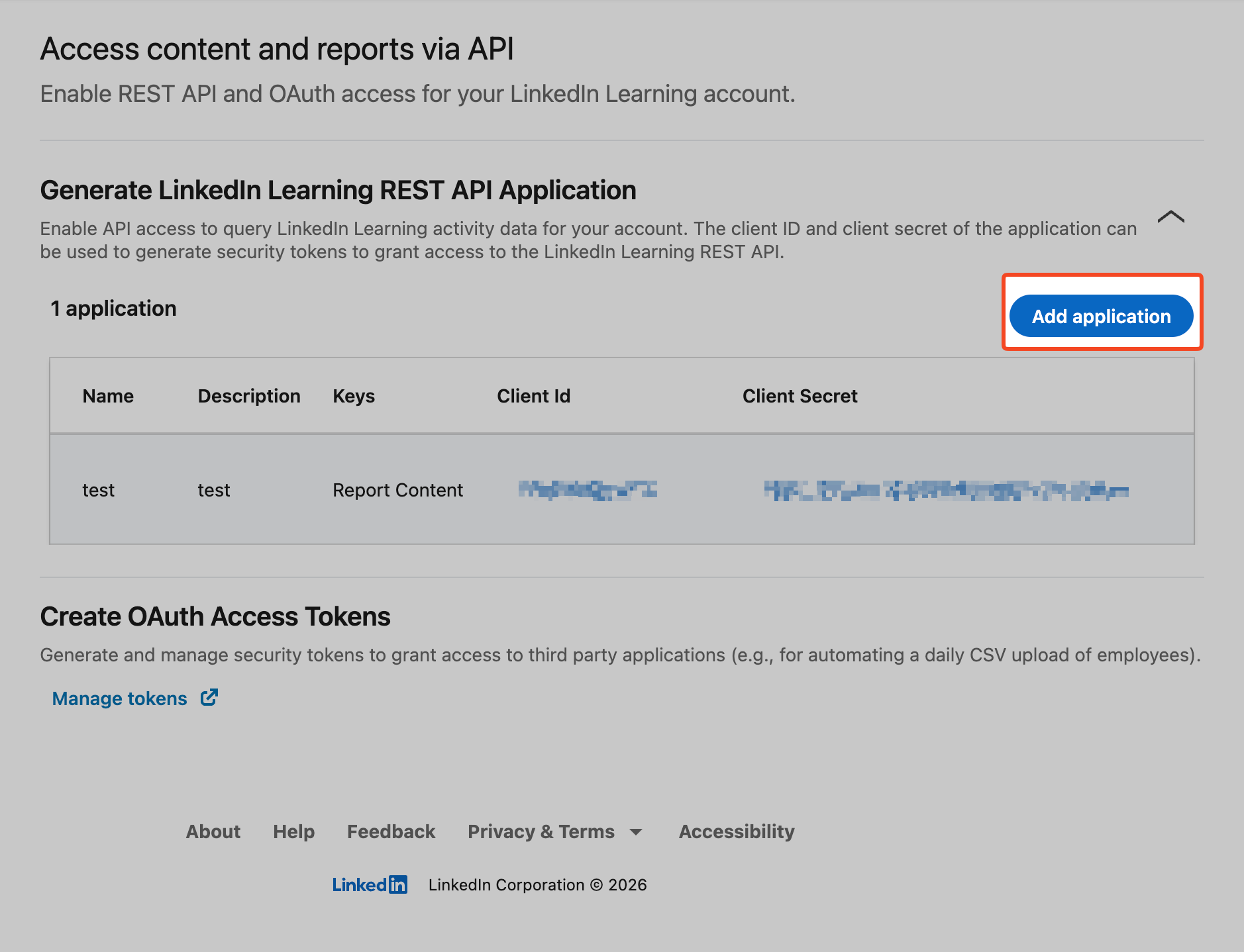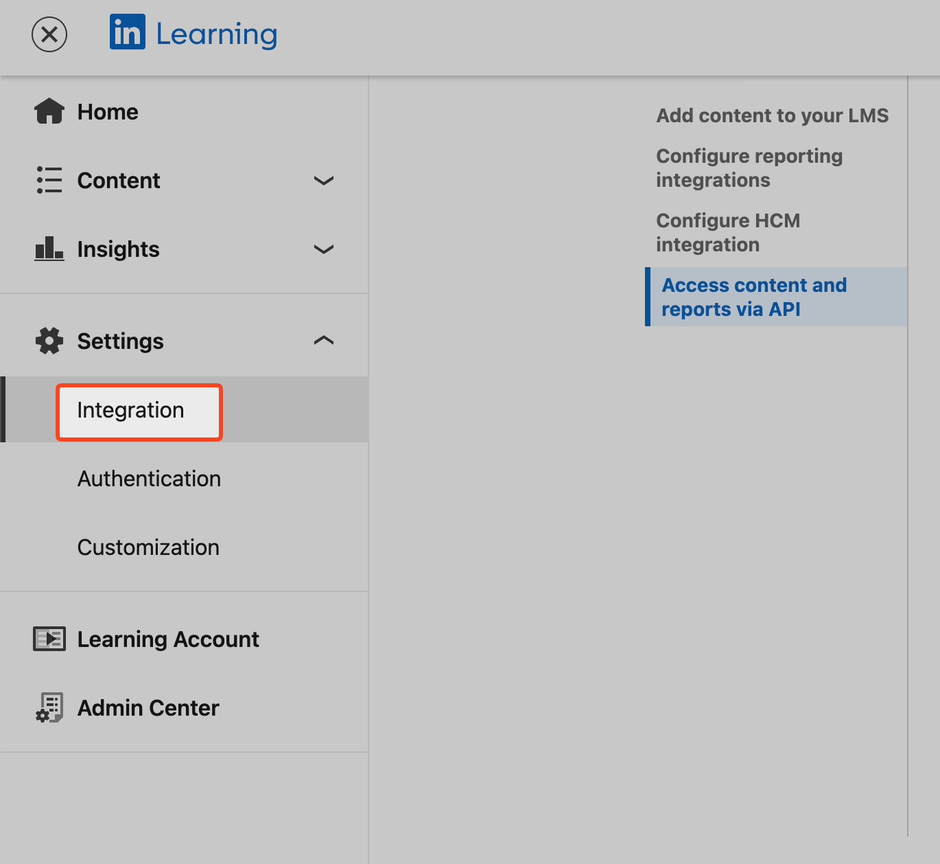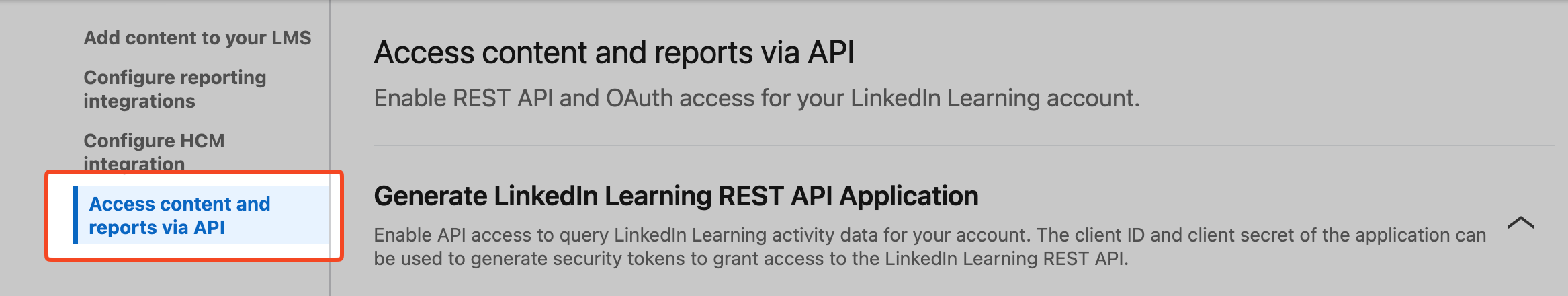 - Click on Access content and reports via API