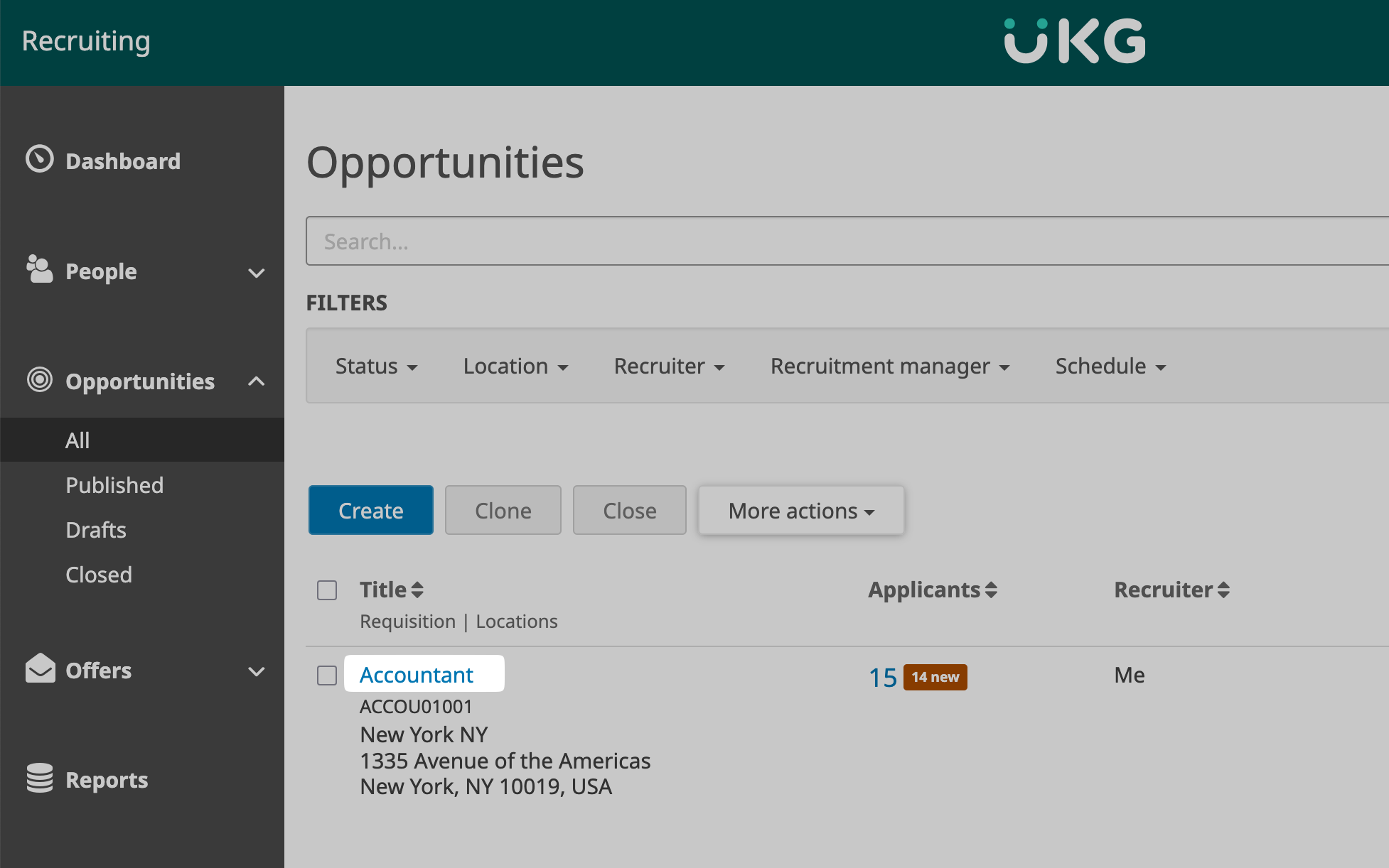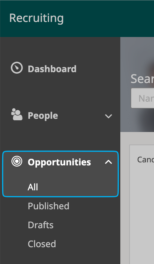 Click on the “All” tab under “Opportunities” on the sidebar in UKG Pro’s Recruiting Gateway: