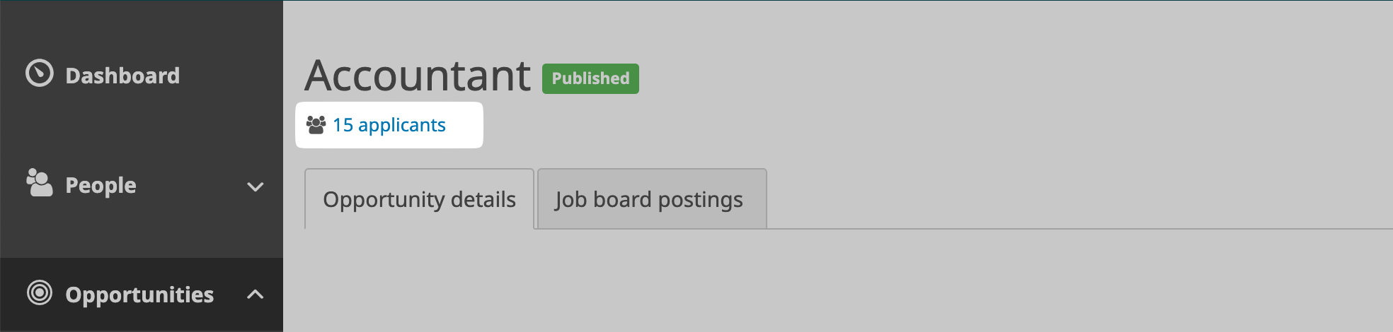 Select a specific job in the “Opportunities” page (we’re using “Accountant” in this example) :