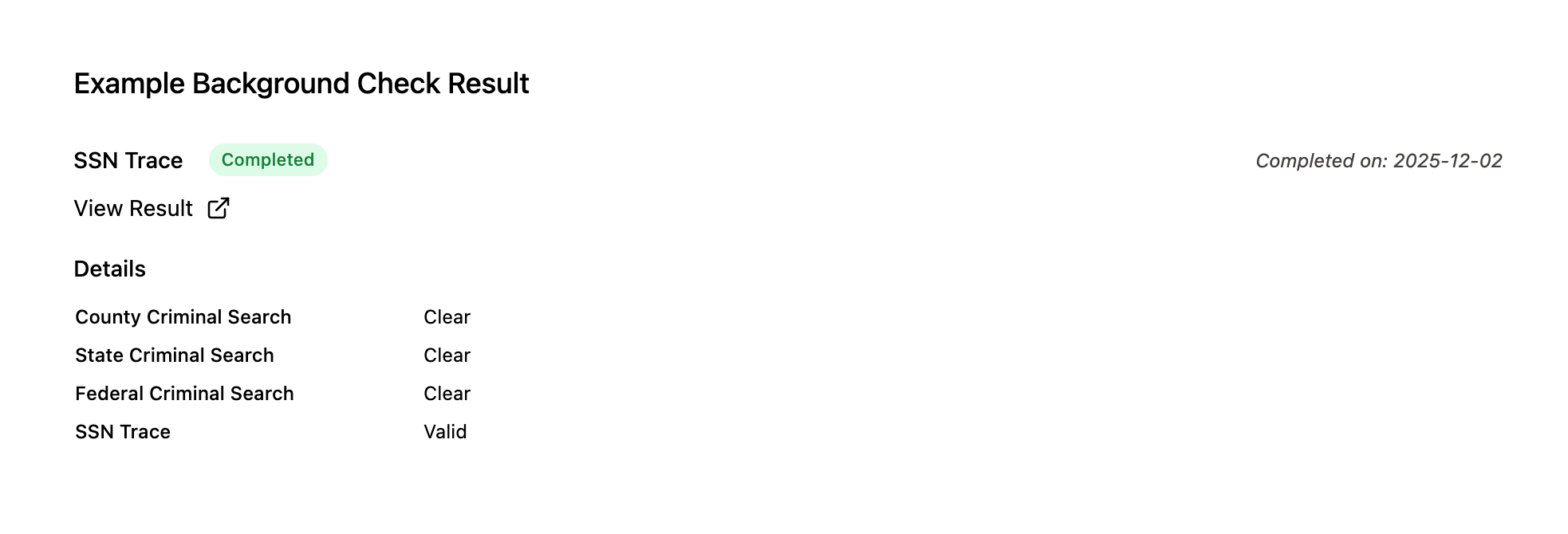 You can view the detailed background check result by clicking on the "View Report" button above :