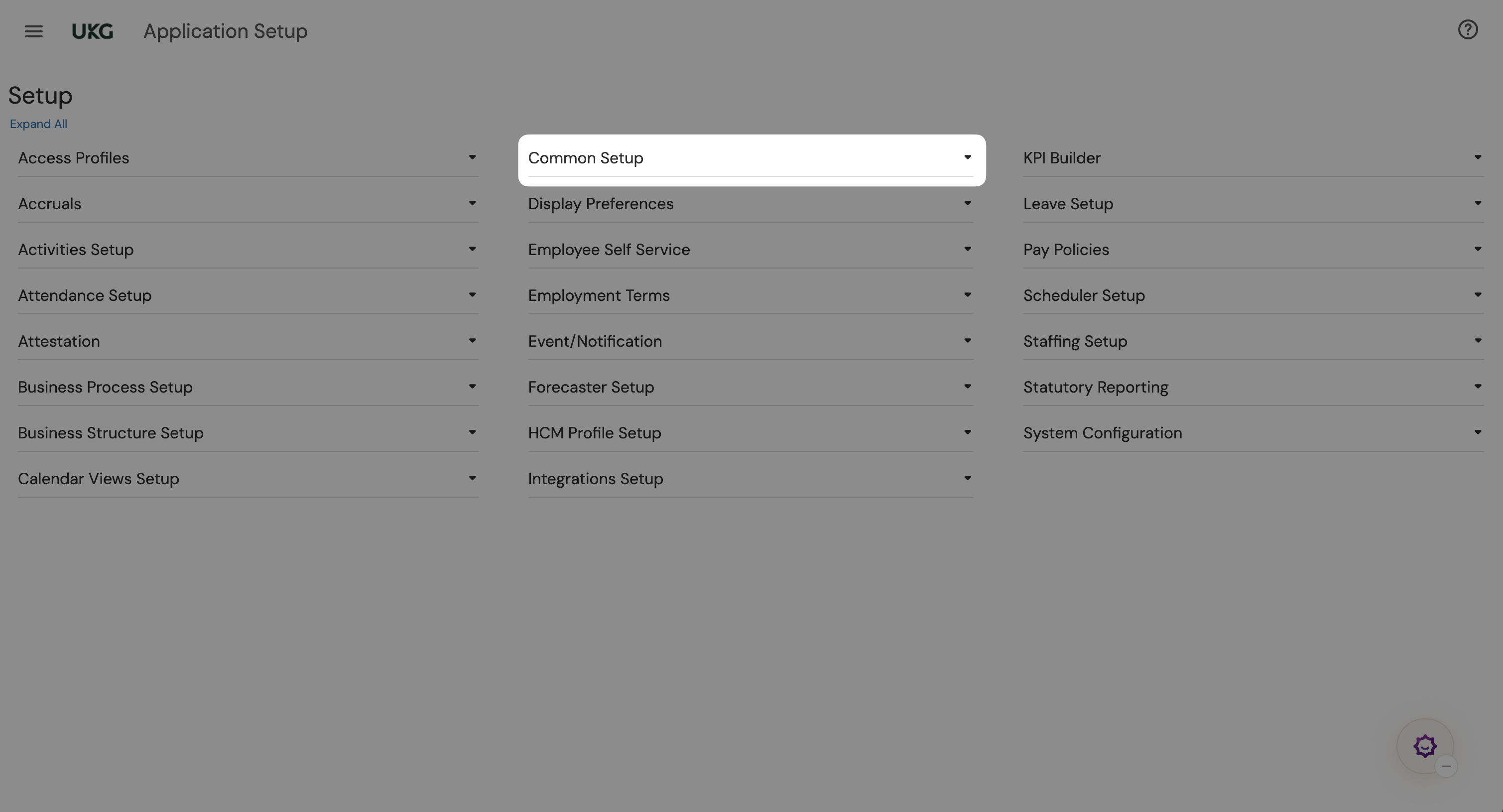 - It will open a new tab in your browser with the Application Setup. Click on "Common Setup".