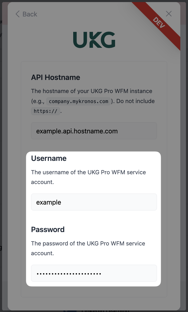 - Enter the Username and Password. They are the same credentials you used to login into your UKG Pro WFM instance as an Administrator.