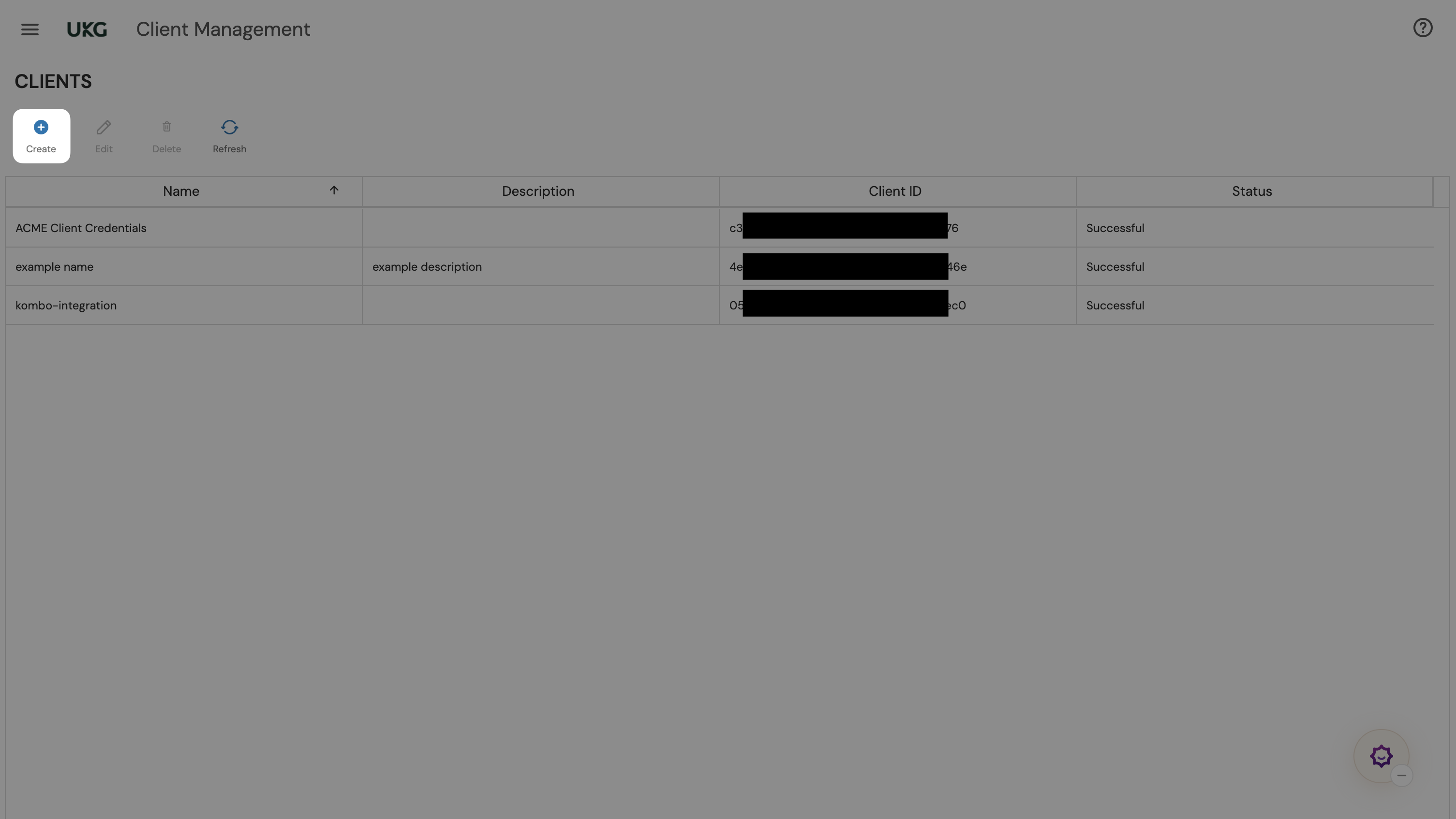 - Click on "Create" to create a new client.