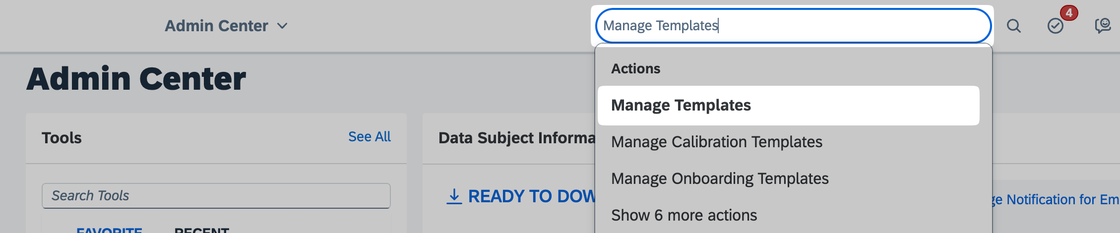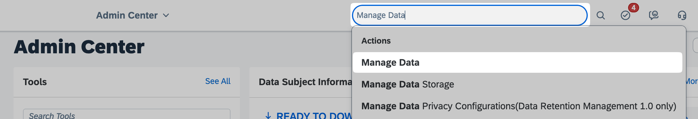 - In SuccessFactors, go to Admin Center and search for "Manage Data":