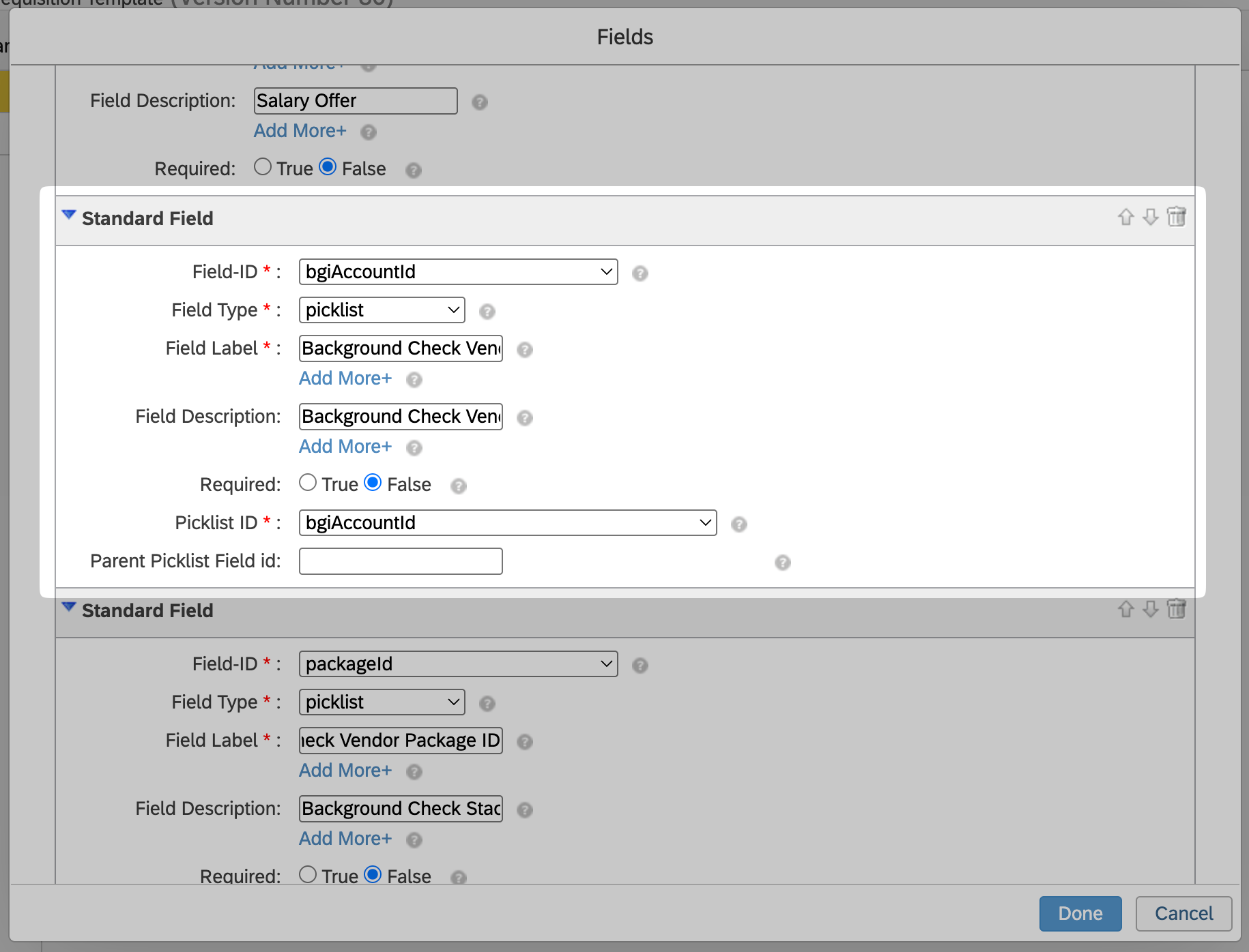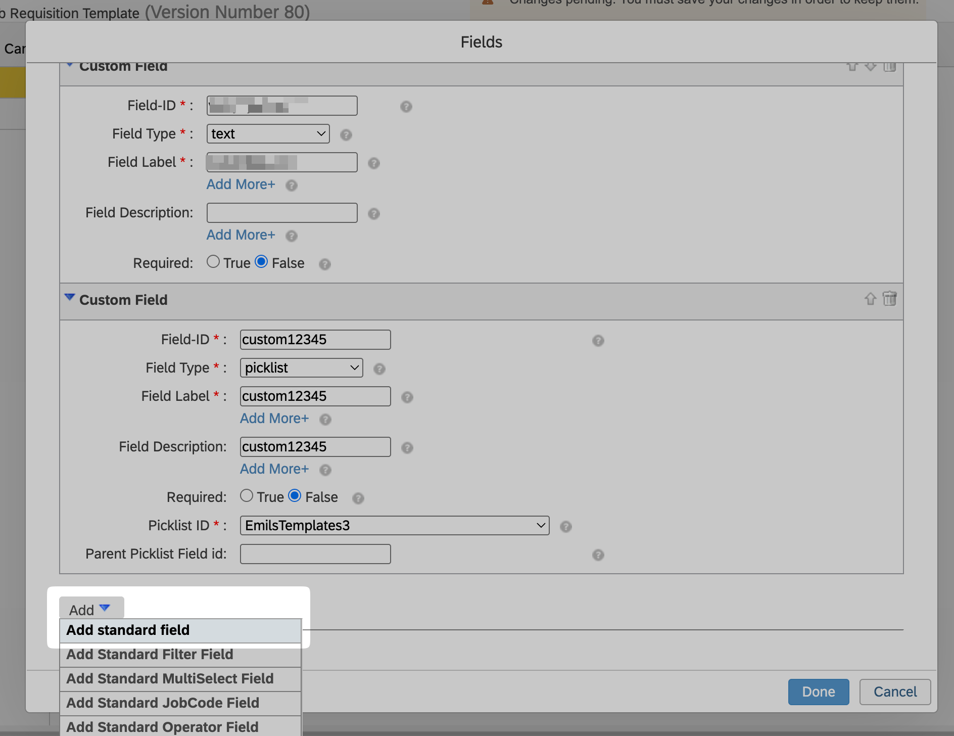 - Search for and make sure there's a field with the following values in the "Fields" pop-up: