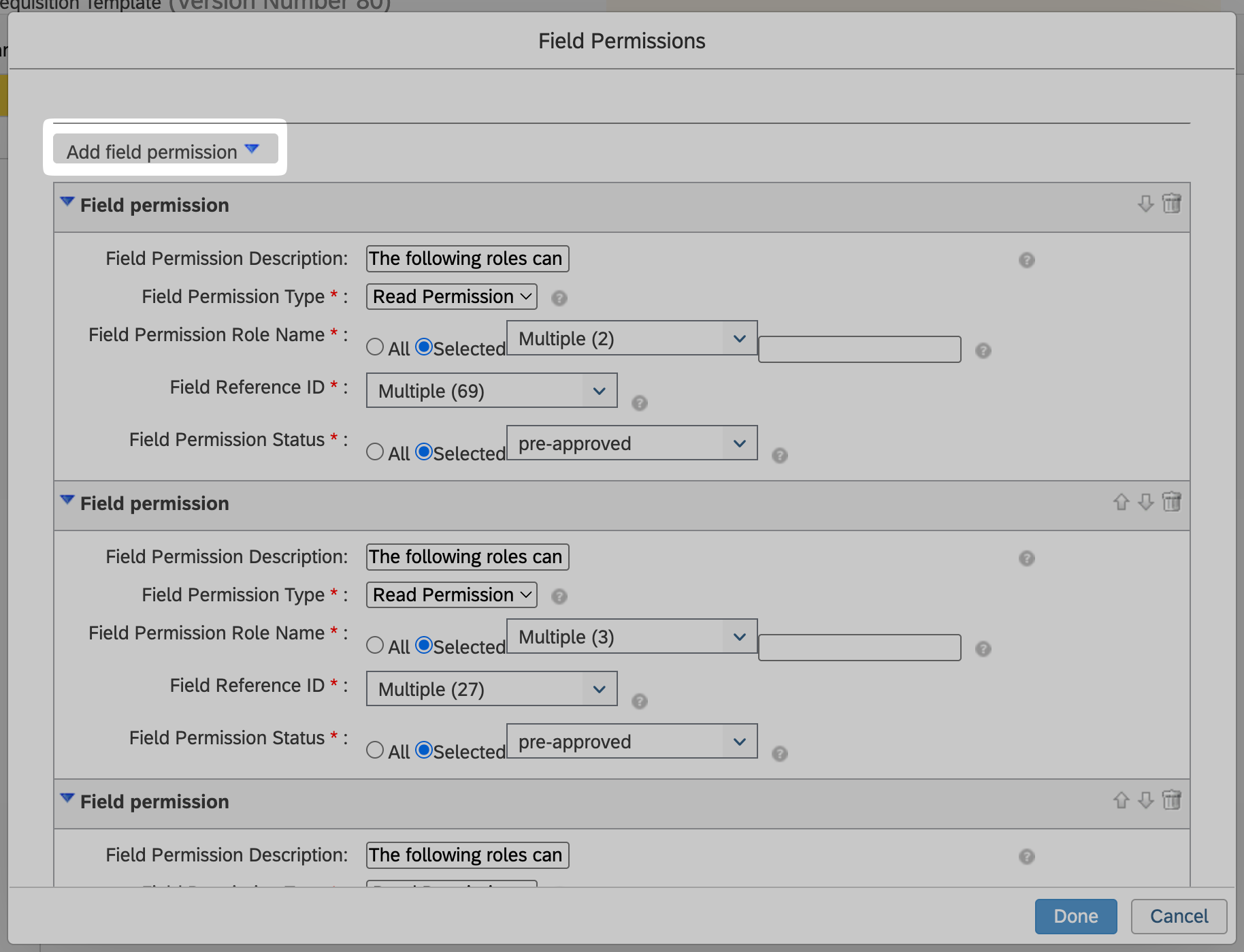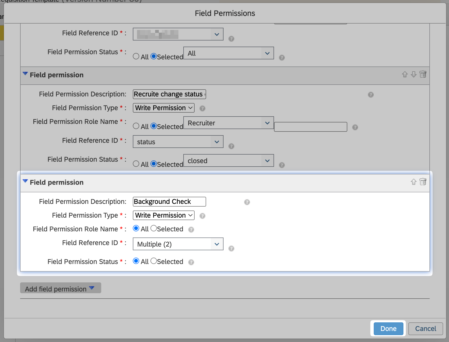 - Click on "Add field permission" in the "Field Permissions" pop-up: