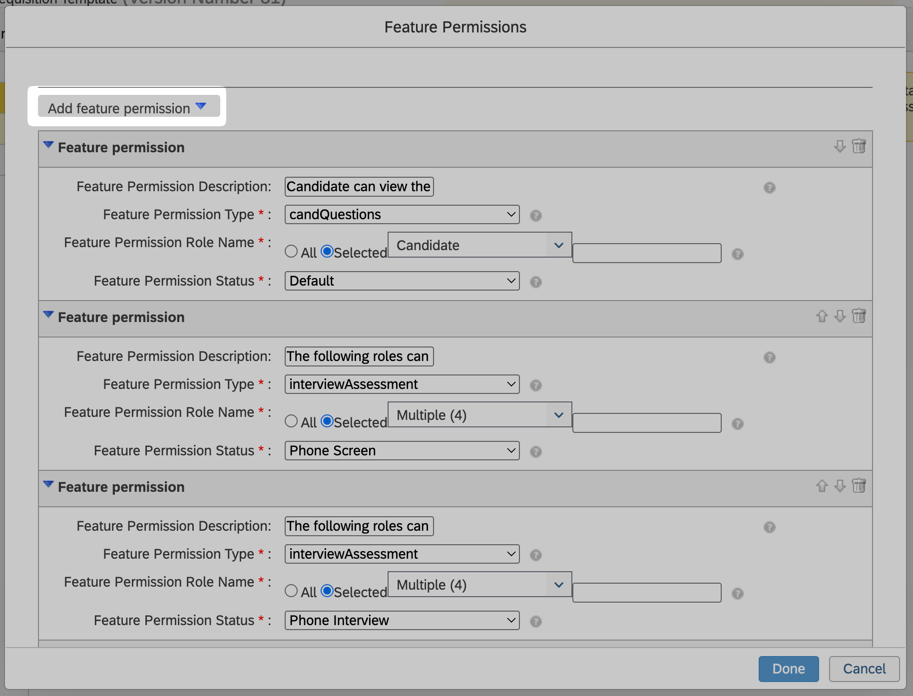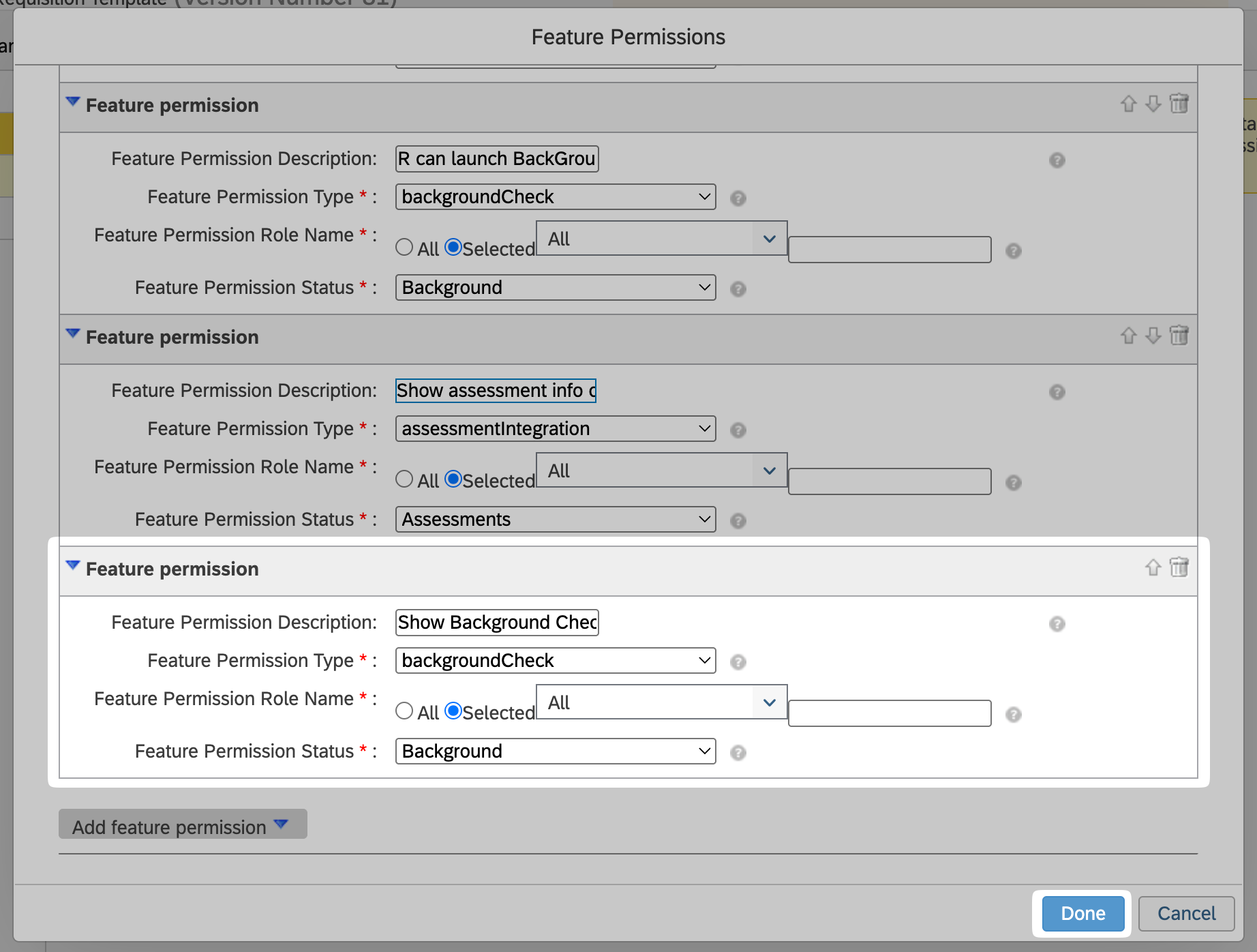 - Click on "Add feature permission" in the "Feature Permissions" pop-up: