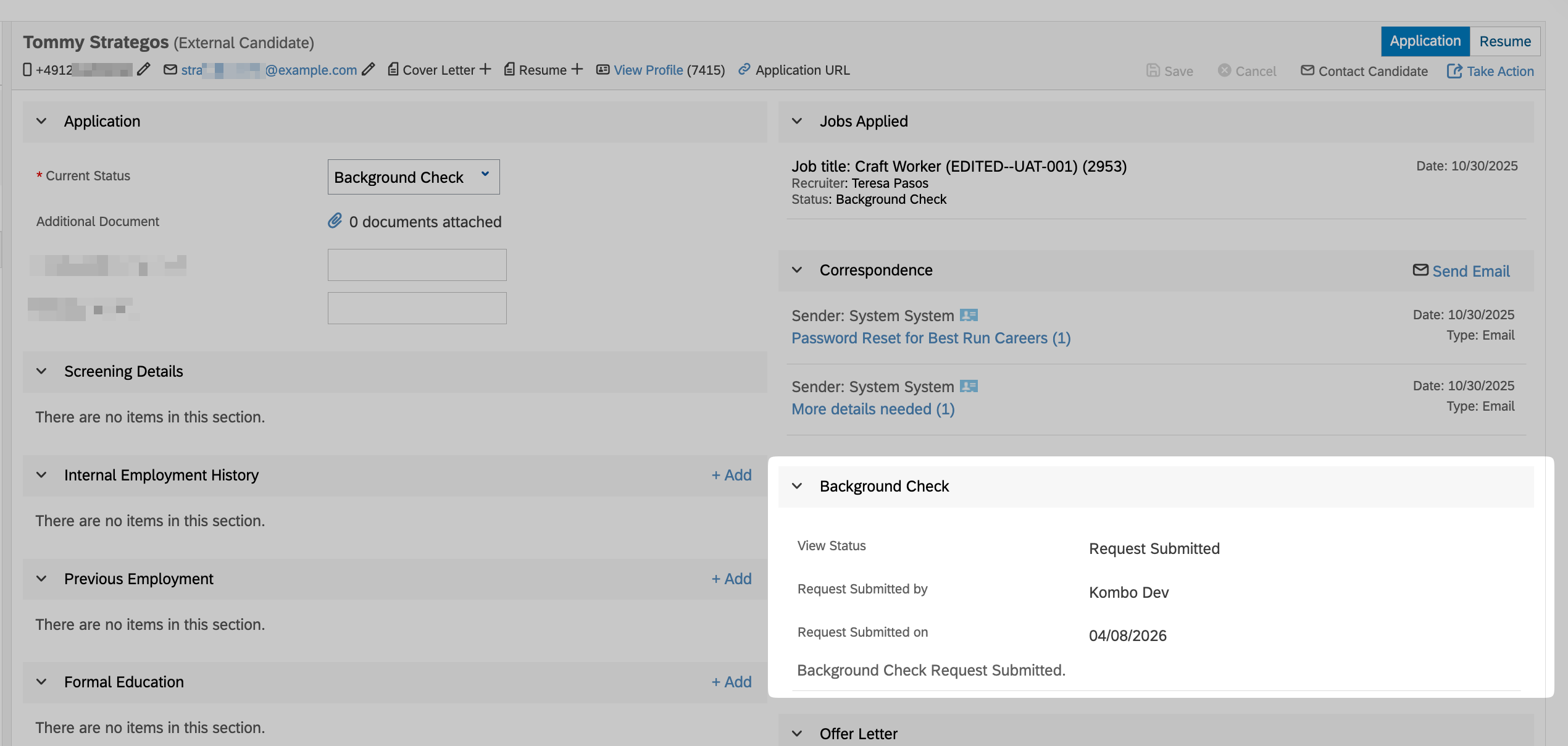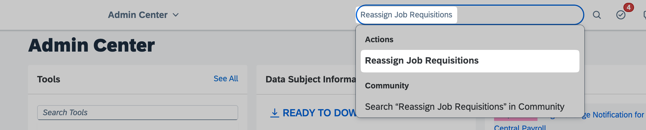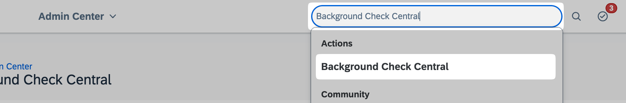 - In SuccessFactors, go to Admin Center and search for "Background Check Central":