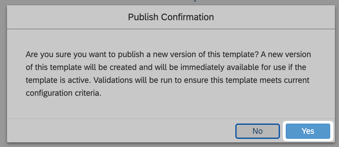 - Click on "Yes" in the "Publish Confirmation" pop-up: