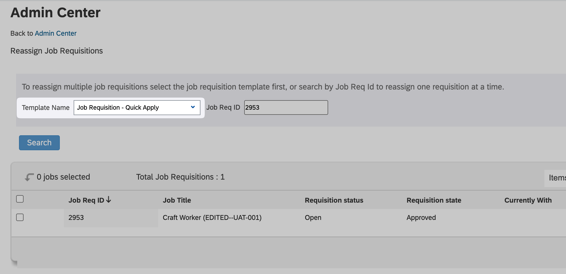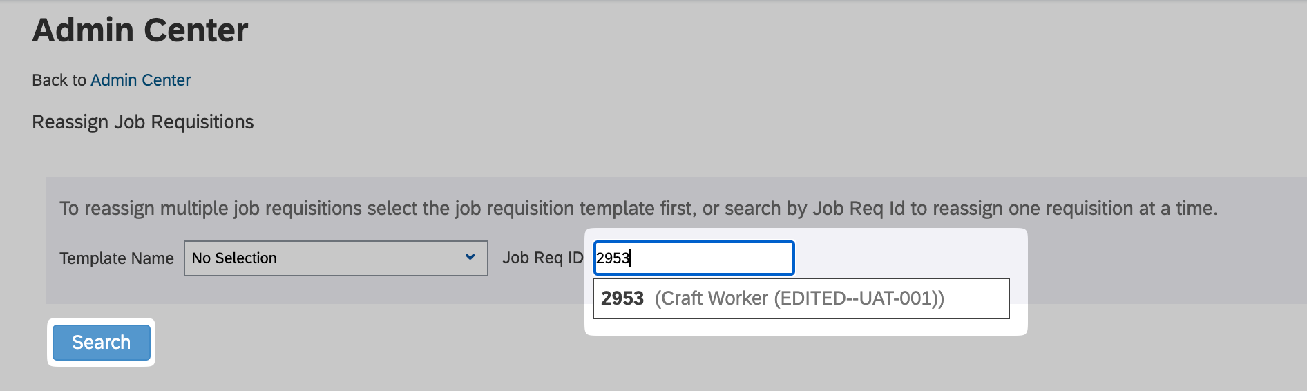 - Type in the ID of the Job Requisition and click on the suggestion, then click "Search":
