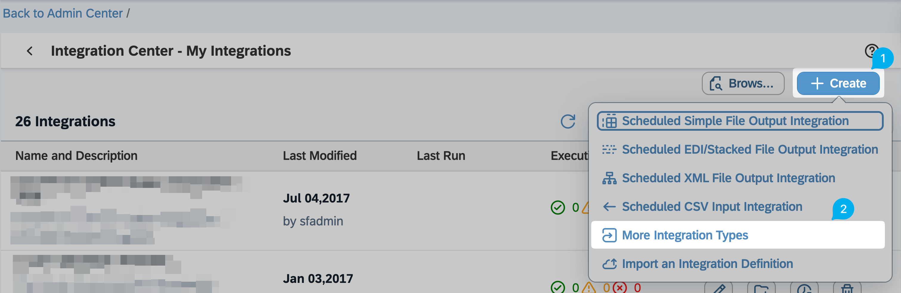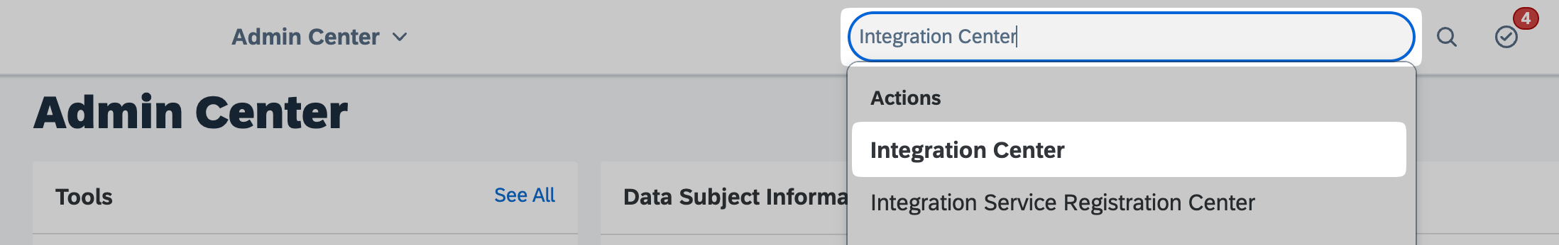 - In SuccessFactors, go to Admin Center and search for "Integration Center":