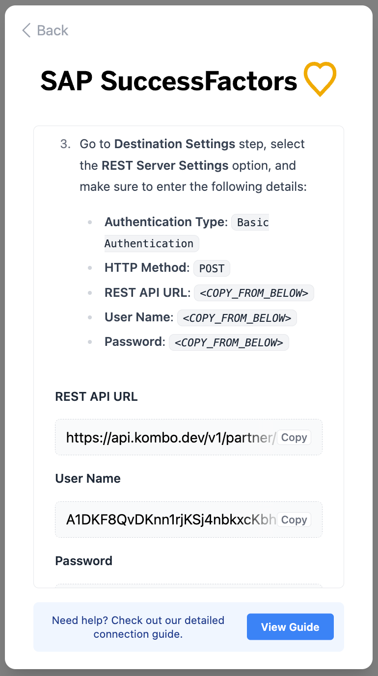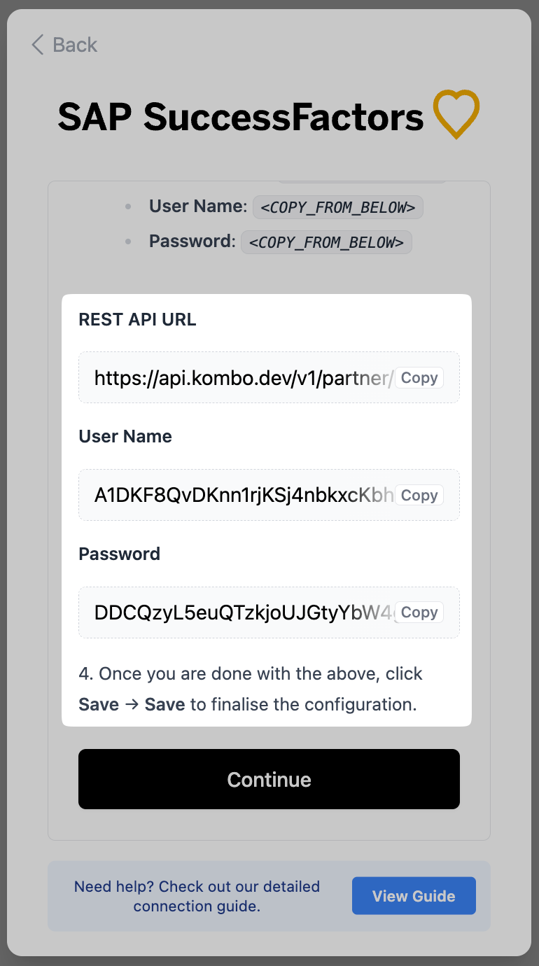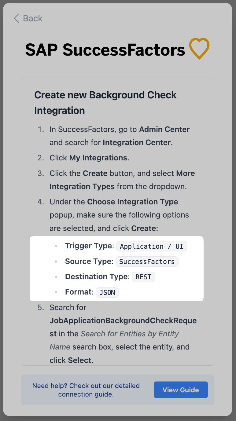 - Alternatively, please contact your SuccessFactors Admin and have them take over the integration setup process.