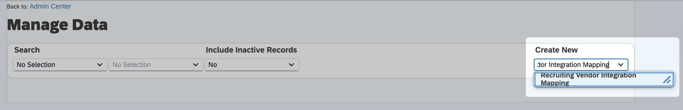 Recruiting Vendor Integration Mappingoption from the "Create New" dropdown:
