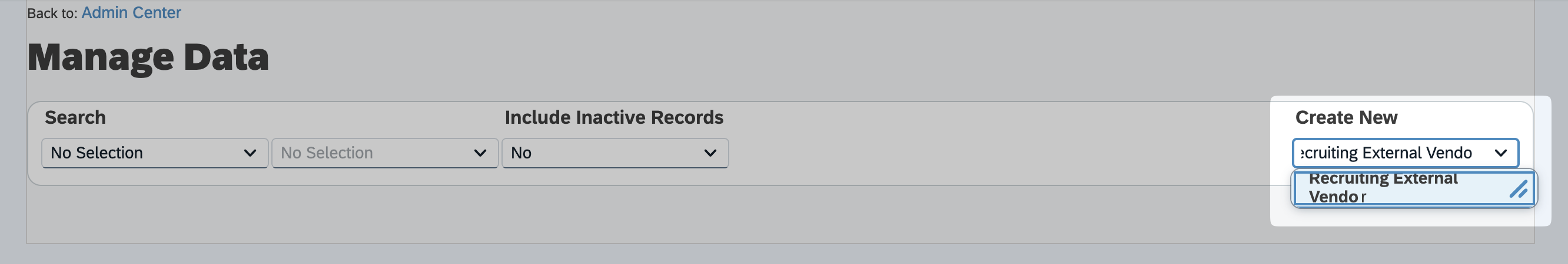 Recruiting External Vendoroption from the "Create New" dropdown: