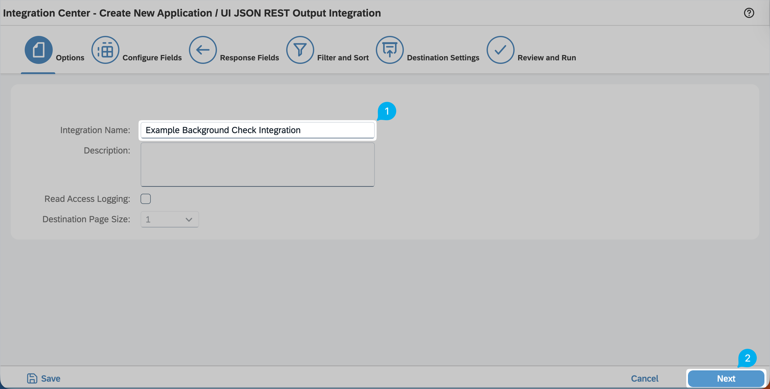 - In the "Options" step, enter a name for the integration. You can use what's suggested in the connection flow, and click "Next":