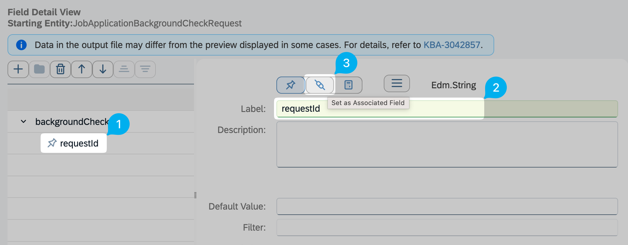 requestIdfield as an example:- Select the child "Element", and change its "Label" to